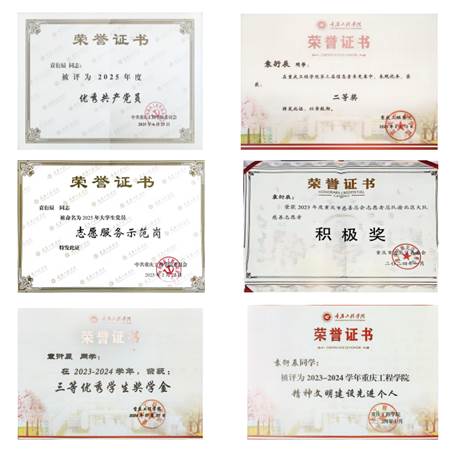 2025-2026学年度 荣获重庆工程学院“优秀学生干部”荣誉称号;