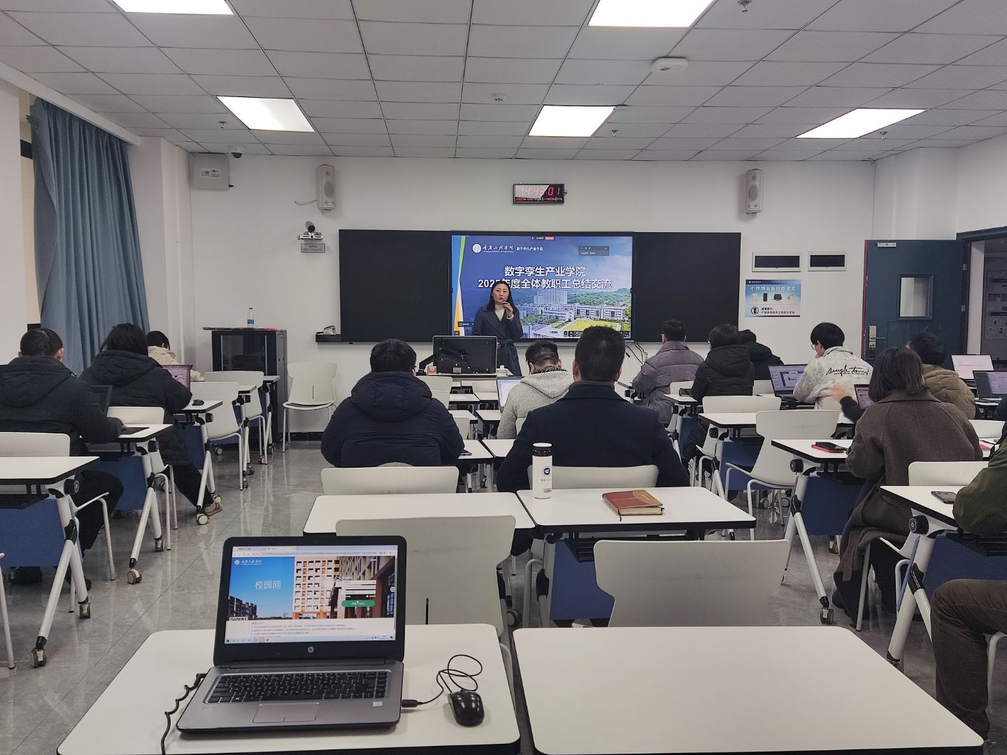 (文/图 数字孪生产业学院 陈斯琪)为全面总结2025年度各项工作开展情况,客观评价教职工履职成效,进一步凝聚发展共识、明确工作方向,12月24日,数字孪生产业学院在7507智慧教室召开年度总结交流会,本次会议由学院副院长张晓颖主持,全体教职工通过线上线下同步参加。